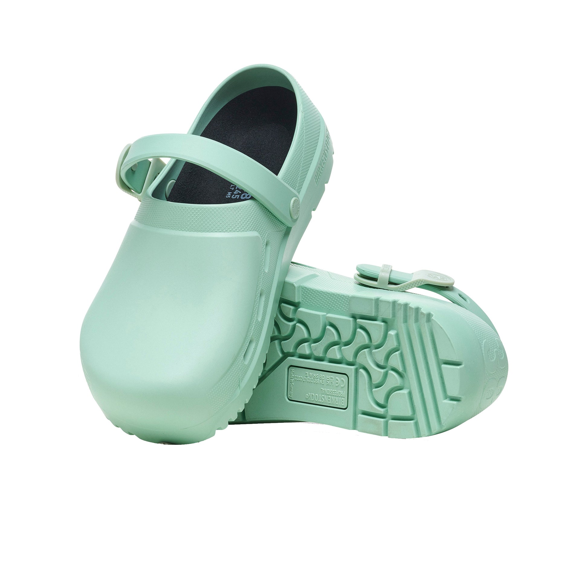 Safety and comfort all in one: The Birki Air 2.0 counts among our popular clog classics. Identifiable by its raised form, this clog is made from antistatic polyurethane and offers perfect comfort with maximum safety and firm grip. The large air inlets at the forefoot keep the foot climate permanently fresh. The original Birkenstock PU footbed can be replaced if necessary and, like the clog, has been tested in accordance with EN ISO 20347:2022. The clogs permanently discharge while in contact with the ground and thereby prevent electrostatic discharge. Stability is further enhanced by the adjustable ankle strap. The PU sole is oil- and grease-resistant.