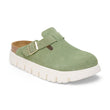 The Boston clog is a veritable classic that can easily be worn all year round. A chunky platform sole takes the clog's iconic design to new heights. Built on contoured footbed, the statement tread stands out below the classic suede upper.