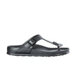 The Birkenstock Gizeh is a stylish all-rounder: extremely versatile yet unbelievably comfortable. Its design and function have remained unchanged since it was introduced in 1983, and the classic thong sandal stands out for its timeless style. Thanks to the buckle, the strap can be individually adjusted to the wearer’s feet. The anatomically shaped thong provides additional support for the toes and guides them back to their natural position.