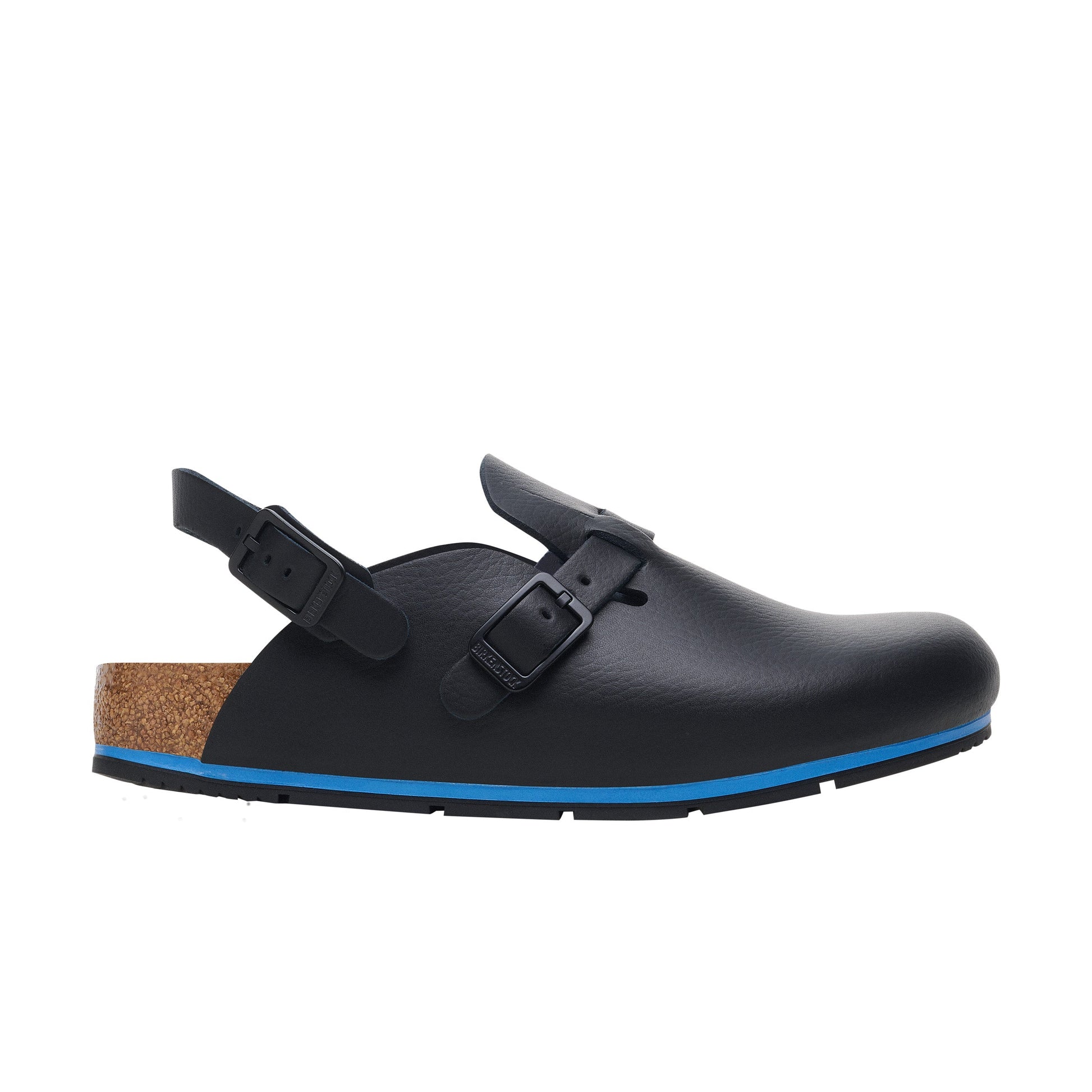 The Kay Pro offers all the advantages of Birkenstock's classic Tokio and Boston models in one. The upper instep strap can be folded back if required, thus providing additional support as a backstrap. The sole is nonslip, promotes the ideal rolling motion, and is also oil- and grease-resistant. The EVA midsole in the leather version has additional soft padding that reliably and permanently cushions the foot with every step - even if your feet are sensitive. This high degree of flexibility and sure-footedness is in great demand in particular in medical environments.