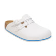 The Kay Pro offers all the advantages of Birkenstock's classic Tokio and Boston models in one. The upper instep strap can be folded back if required, thus providing additional support as a backstrap. The sole is nonslip, promotes the ideal rolling motion, and is also oil- and grease-resistant. The EVA midsole in the leather version has additional soft padding that reliably and permanently cushions the foot with every step - even if your feet are sensitive. This high degree of flexibility and sure-footedness is in great demand in particular in medical environments.