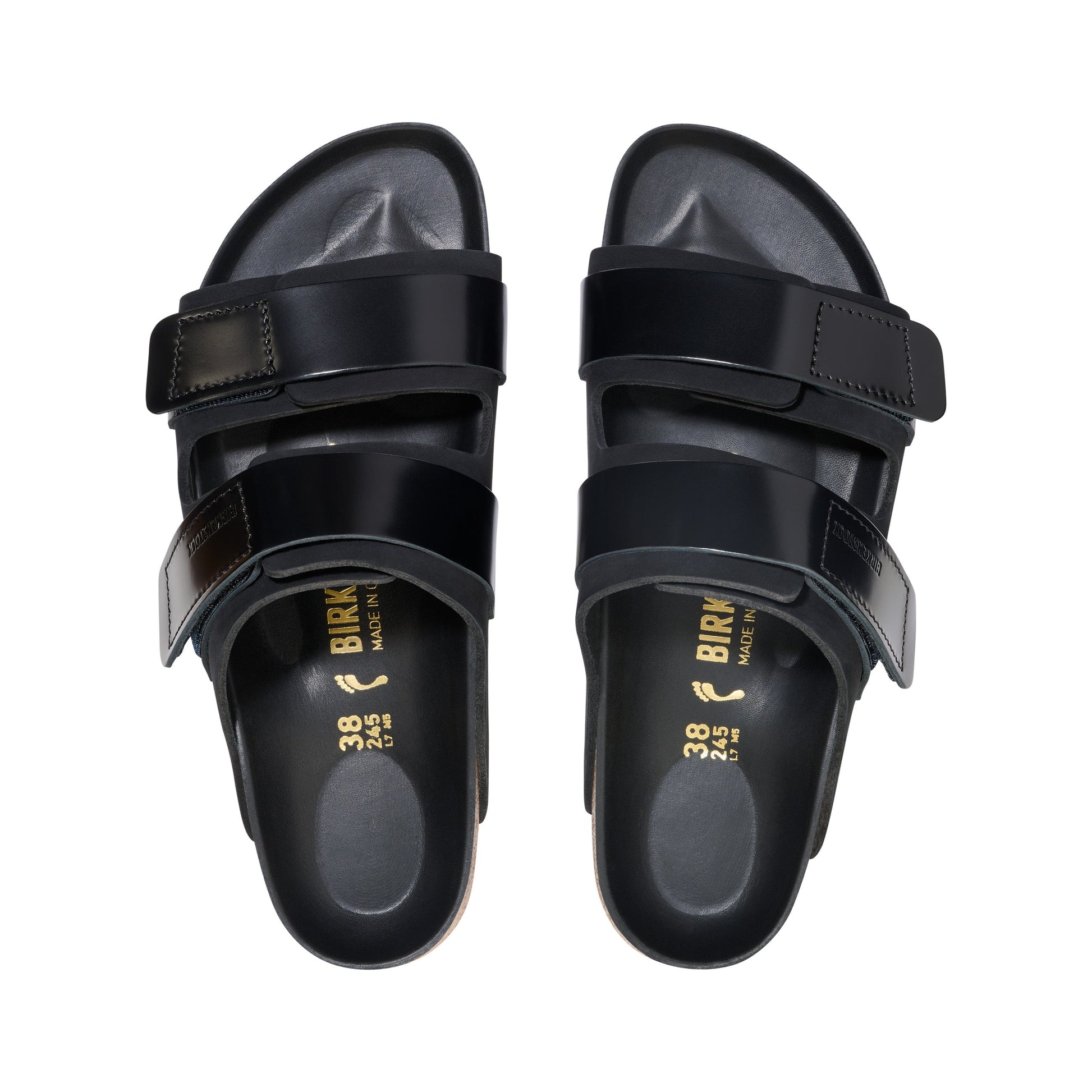 Minimalist by design to maximize on-the-go comfort. The Uji's suede upper comes together softly over the foot, secured by high shine hook-and-loop straps for a patently perfect fit. The style is grounded in signature Birkenstock support, with a contoured footbed that shapes to you with wear.